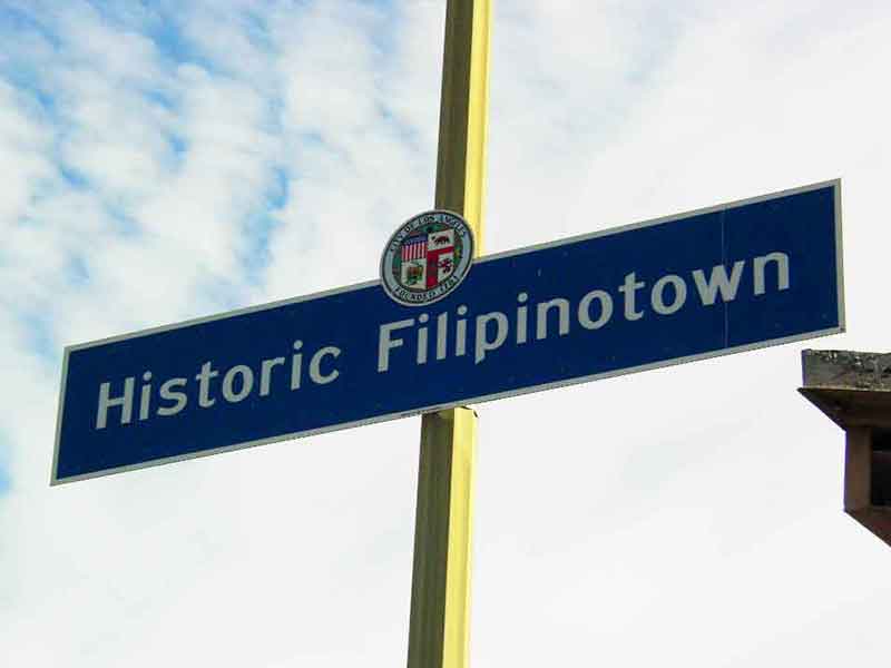 A sign for Historic Filipinotown, an LA district in the southwest portion of Echo Park. The district was designated by a resolution proposed by then-City Councilman Eric Garcetti on Aug. 2, 2002. (Courtesy of Florante Ibanez.)