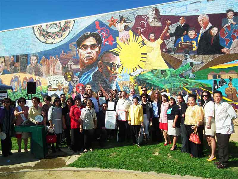 Community leaders and officials gathered to receive a certificate, signed by first lady Michelle Obama, recognizing the Historic Filipinotown neighborhood of LA as a Preserve America Community in 2012. (Courtesy of Florante Ibanez.)