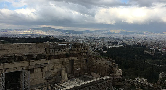 The view of Athens from the peak of the Acropolis where the Parthenon sits.