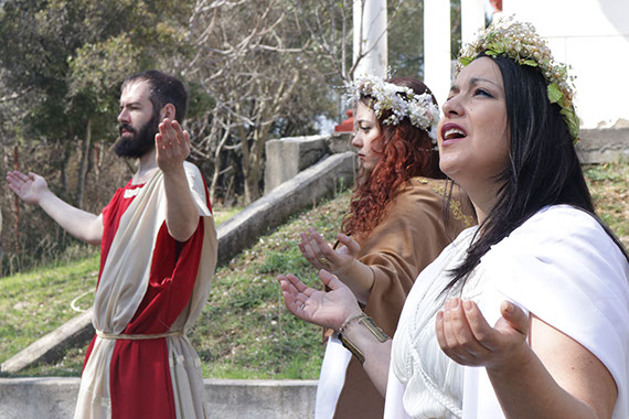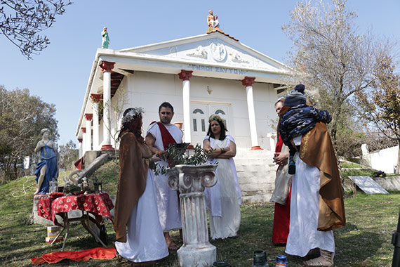 Hellenismos celebrate gods dressed in traditional ancient Greek garb on March 12, 2017.