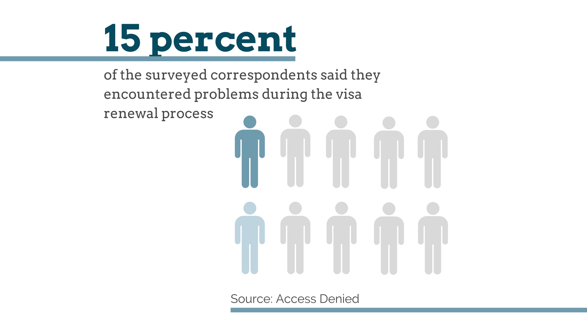 According to Access Denied, over 30 percent of respondents said their Chinese colleagues had been pressured, harassed or intimidated in 2017. Foreign correspondents in China rely heavily on native Chinese news assistants. Under Chinese law, native Chinese can’t work for foreign media as independent journalists, but only as researchers or news assistants. A Wall Street Journal news assistant his job is to arrange interviews and gather background information for foreign journalists. He just worked on a series of stories about the social surveillance in China, but he couldn’t have a tagline because of the government’t policy.(As The Journal's policy, he would only speak about his role at the papaer on the condition that his name not be used.)