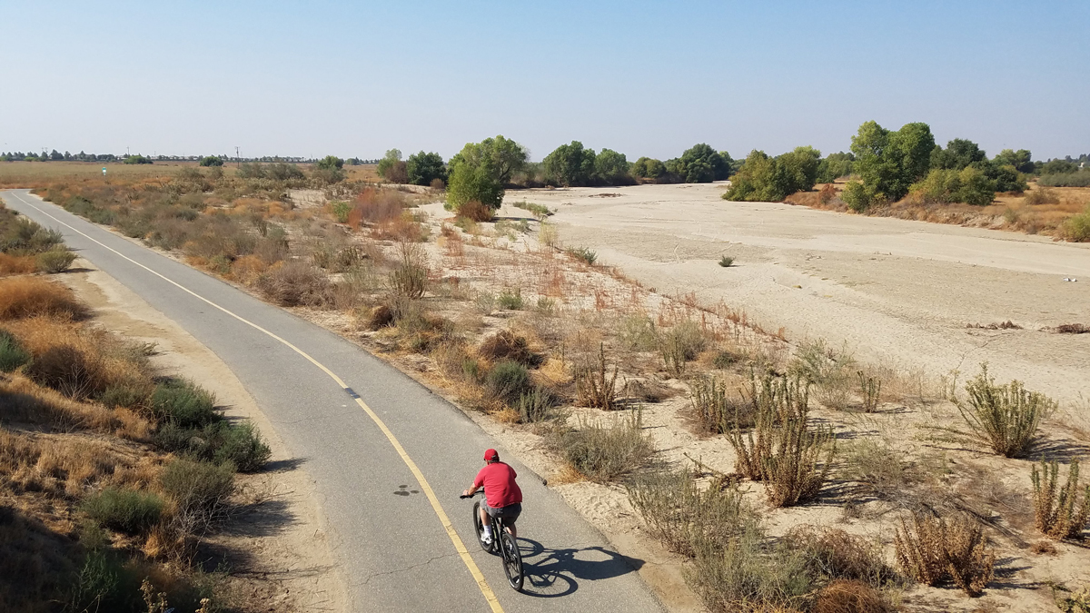 A biker pedals along the "river" trail. (Bring Back the Kern)