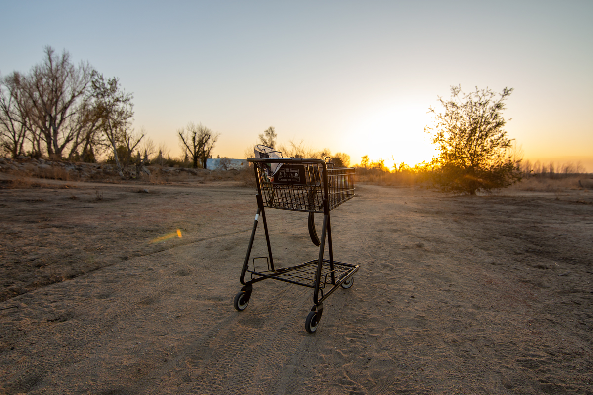 A shopping cart is abandoned in the riverbed. (Jonathan Horwitz)